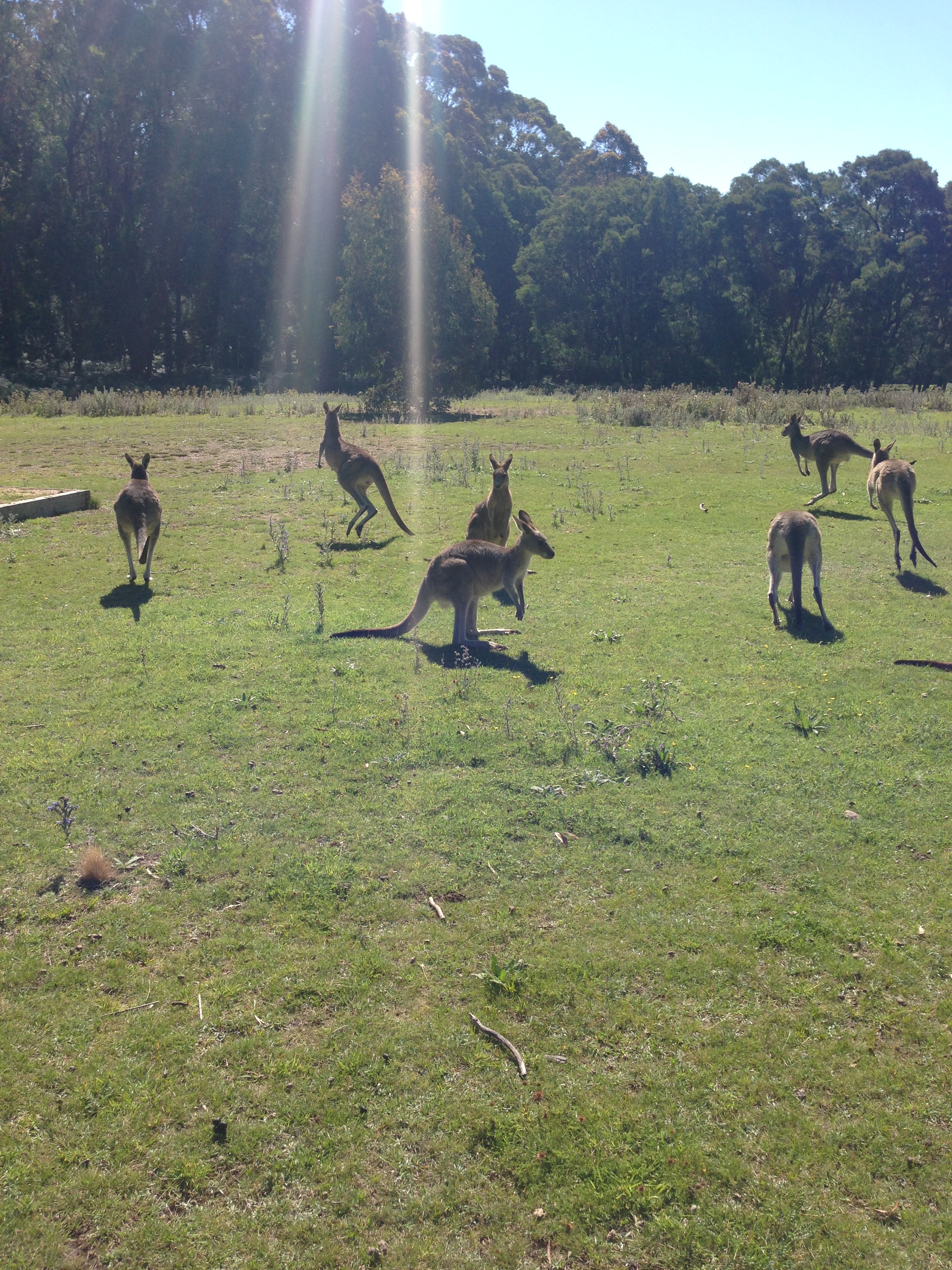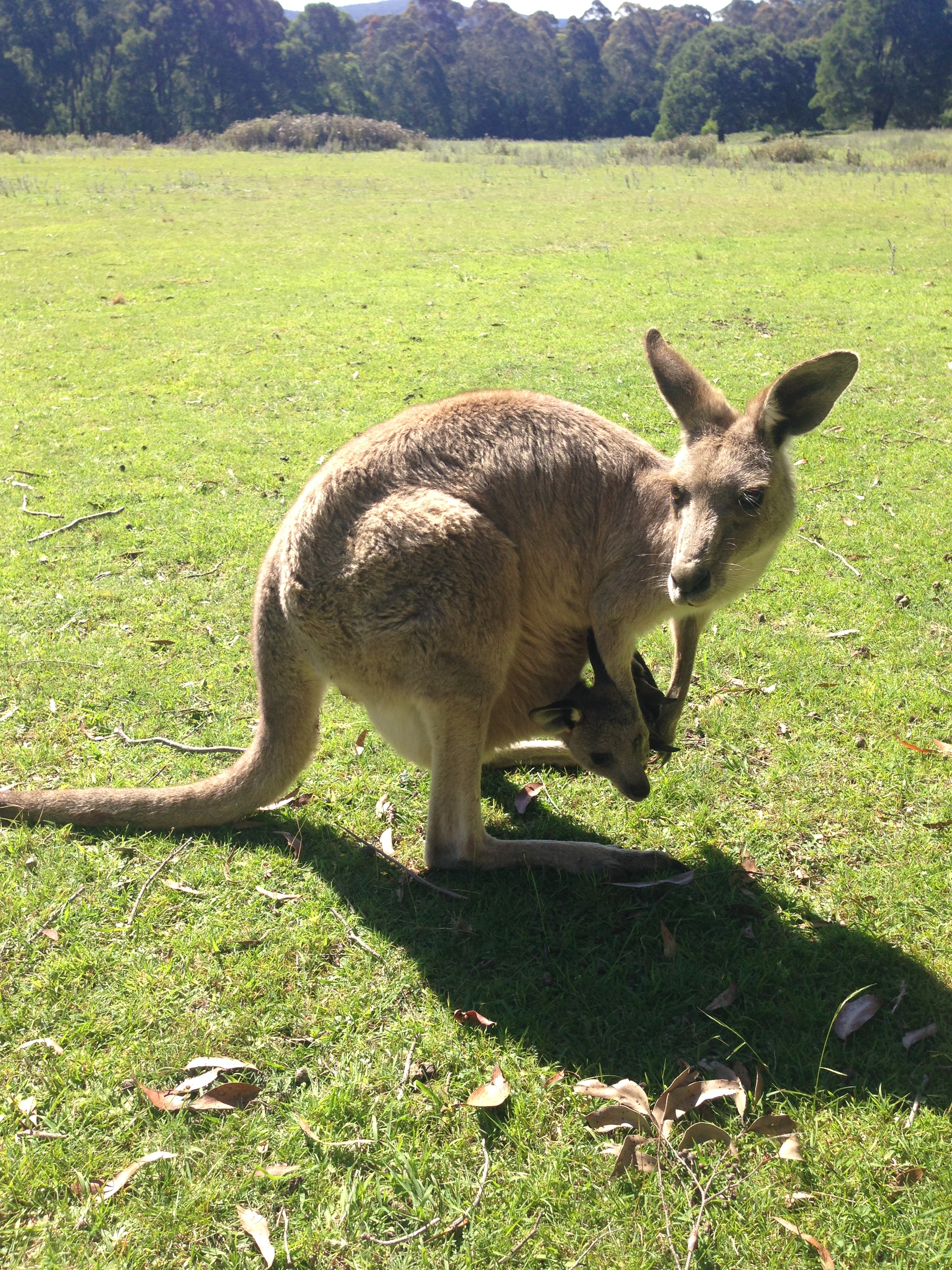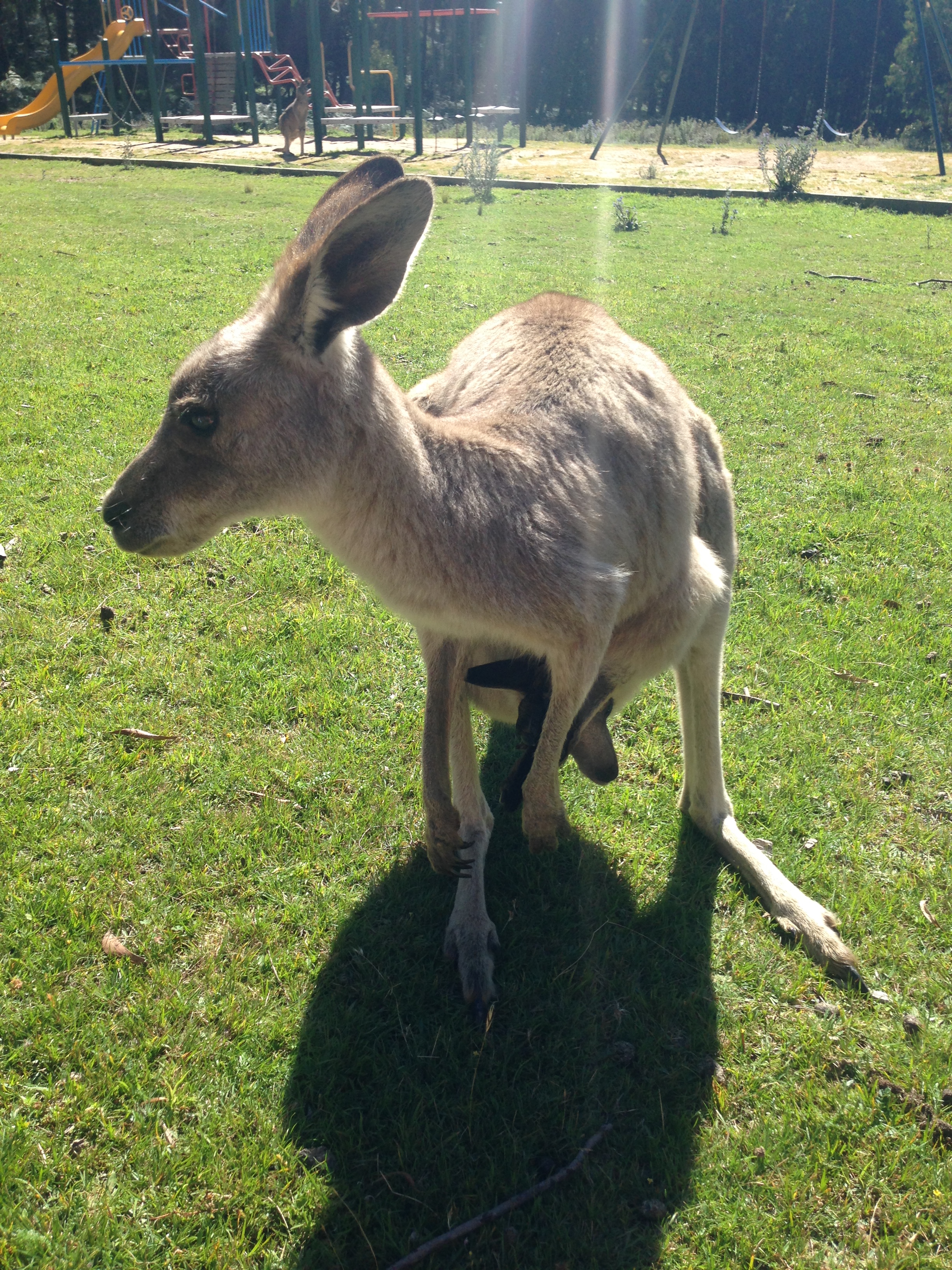 On the way back from the Blue Mountains and Jenolan Caves, our tour guide decided to make a detour to an area where he knew there would be a high chance that we’d see some kangaroos in the wild. You would never guess where it was. A playground. It seems as though the kangaroos have made that their habitat, and we were lucky enough to have been invited into their homes. When we showed up, they weren’t scared of us at all; keeping in mind that you have to approach them slowly and quietly. If you make any sudden movements, they’ll hop away. You have to bend/crouch down so that you’re eye level with them. Otherwise, they’ll think that you’re trying to fight them for their territory and you do not want that.