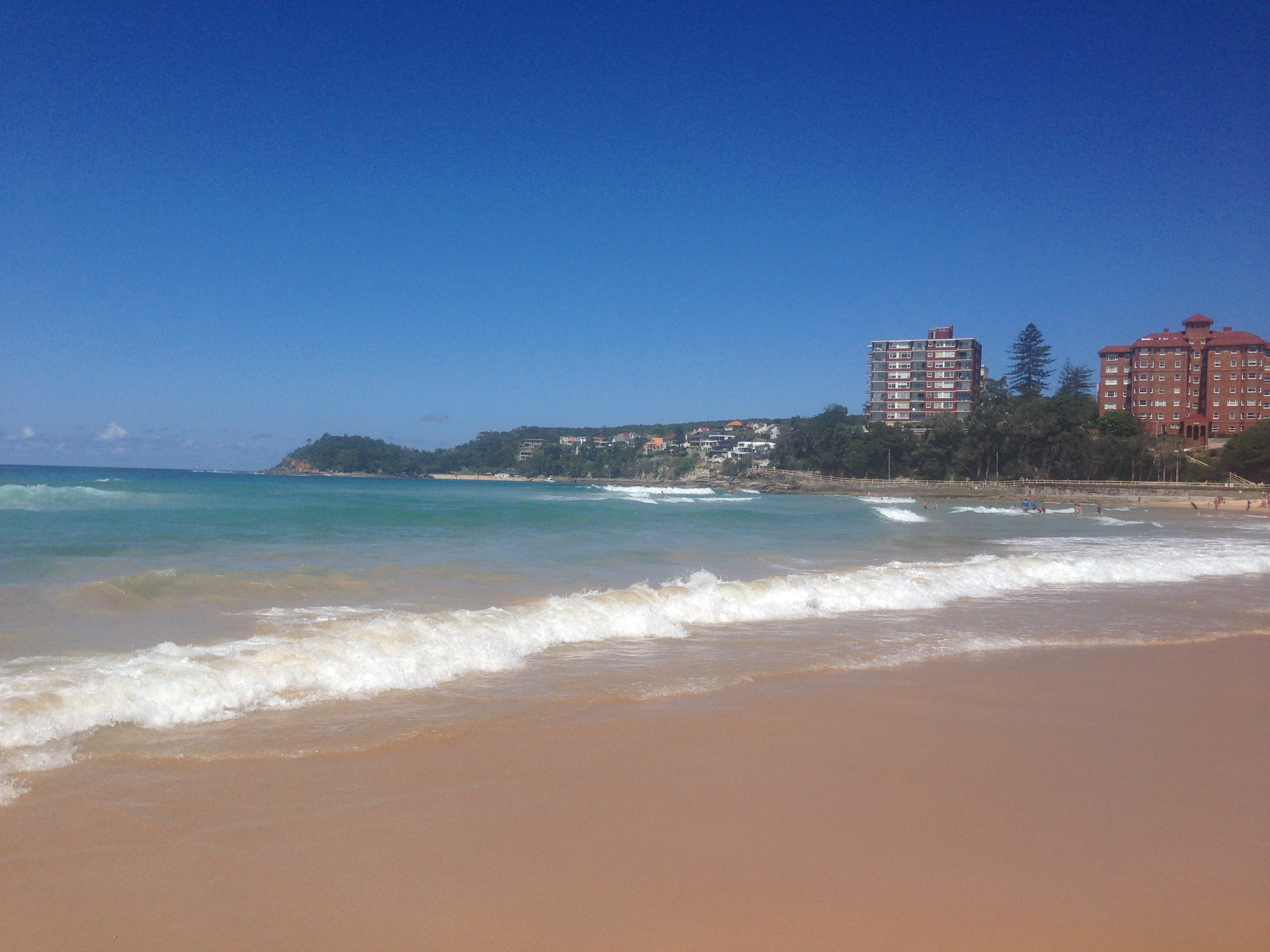 One thing I learned while staying in Sydney is that the weather can be very unpredictable. When I woke up in Sydney that morning, it was pouring. It didn’t look like I was going to get my tan on. But once we started our ferry ride, the weather started clearing up. When we got to Manly, it was picture perfect beach weather. It was almost as if the weather Gods smiled upon us for our last day in Australia. It was a little windier than I would have liked, but the sun was out, so I can’t complain. Plus, I guess that just meant better waves for the surfers out there. The waves were actually kind of rough that day. In order to avoid it, you either have to attempt to run back to shore, or dive in head first, Kate-Bosworth-Blue-Crush style. (NOTE TO SELF: DO NOT DIVE IN HEAD FIRST KATE BOSWORTH BLUE CRUSH STYLE. You WILL get bitch-slapped by the ocean). Also I’m not sure if it was just that day since it was windy, but I noticed a lot of sandbars too. So just be extra careful and be sure to look where you’re stepping.