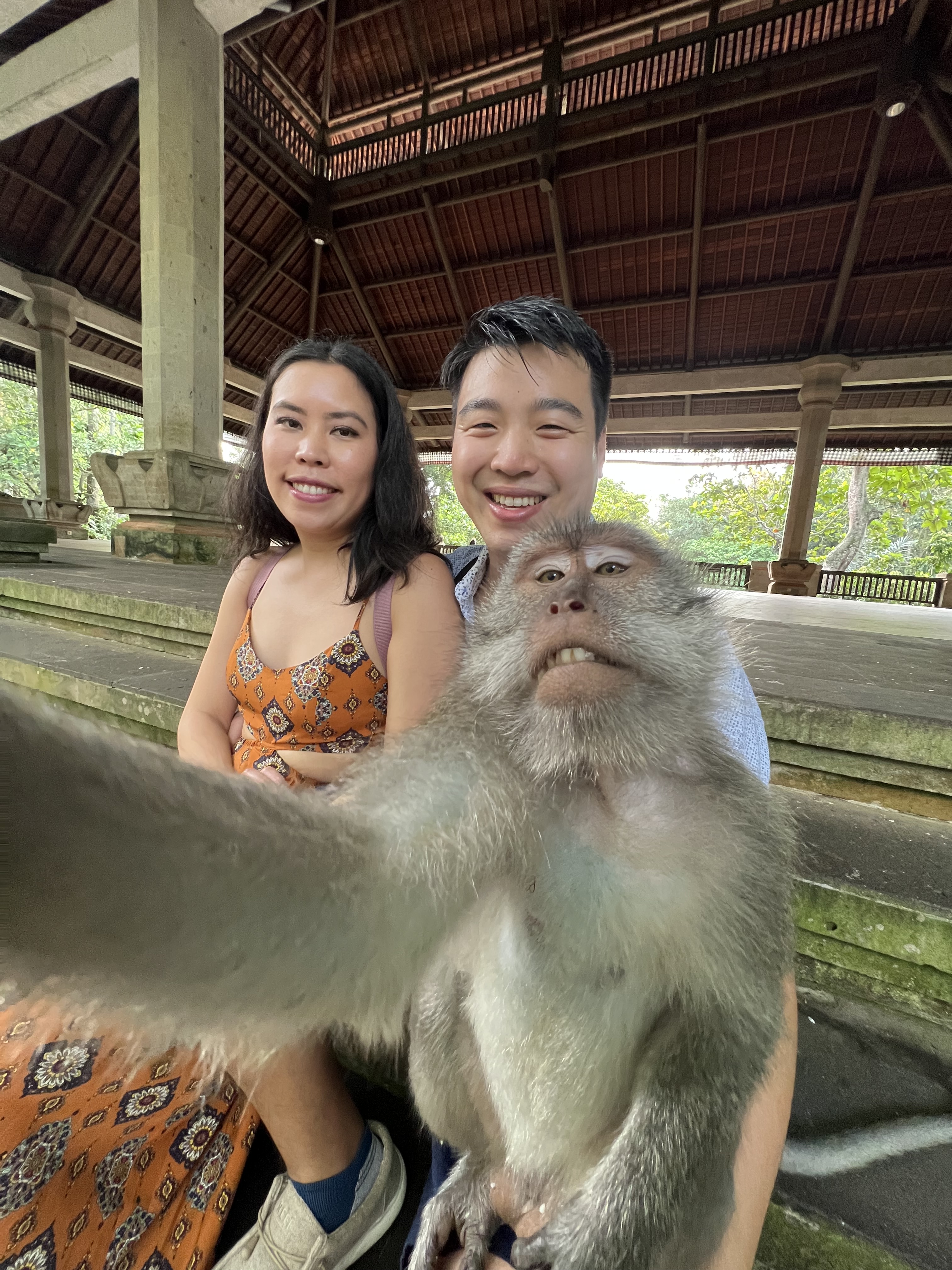 This is home to about 600 crab-eating macaques, also known as Balinese long-tailed monkeys. They roam freely around the park, so make sure to keep your belongings/valuables close to you, as they have been known to grab things. You’re not allowed to touch or feed them, but you are allowed pictures as long as you keep a safe distance. You also have the option of paying $3 USD to the park ranger to help you take a photo with the monkey, so that it looks the monkey is taking a selfie. It was a $3 well spent for such a unique photo op. We spent about an hour walking around the park